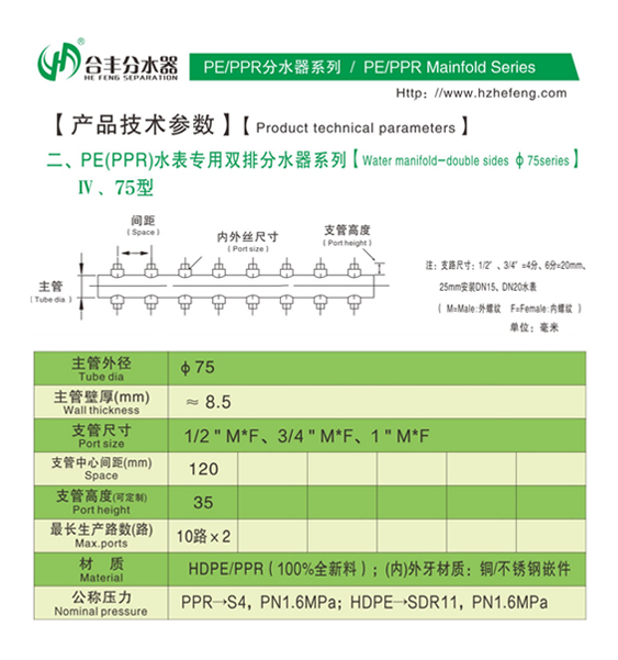 PE(PPR)水表專用雙排分水器系列IV、75型